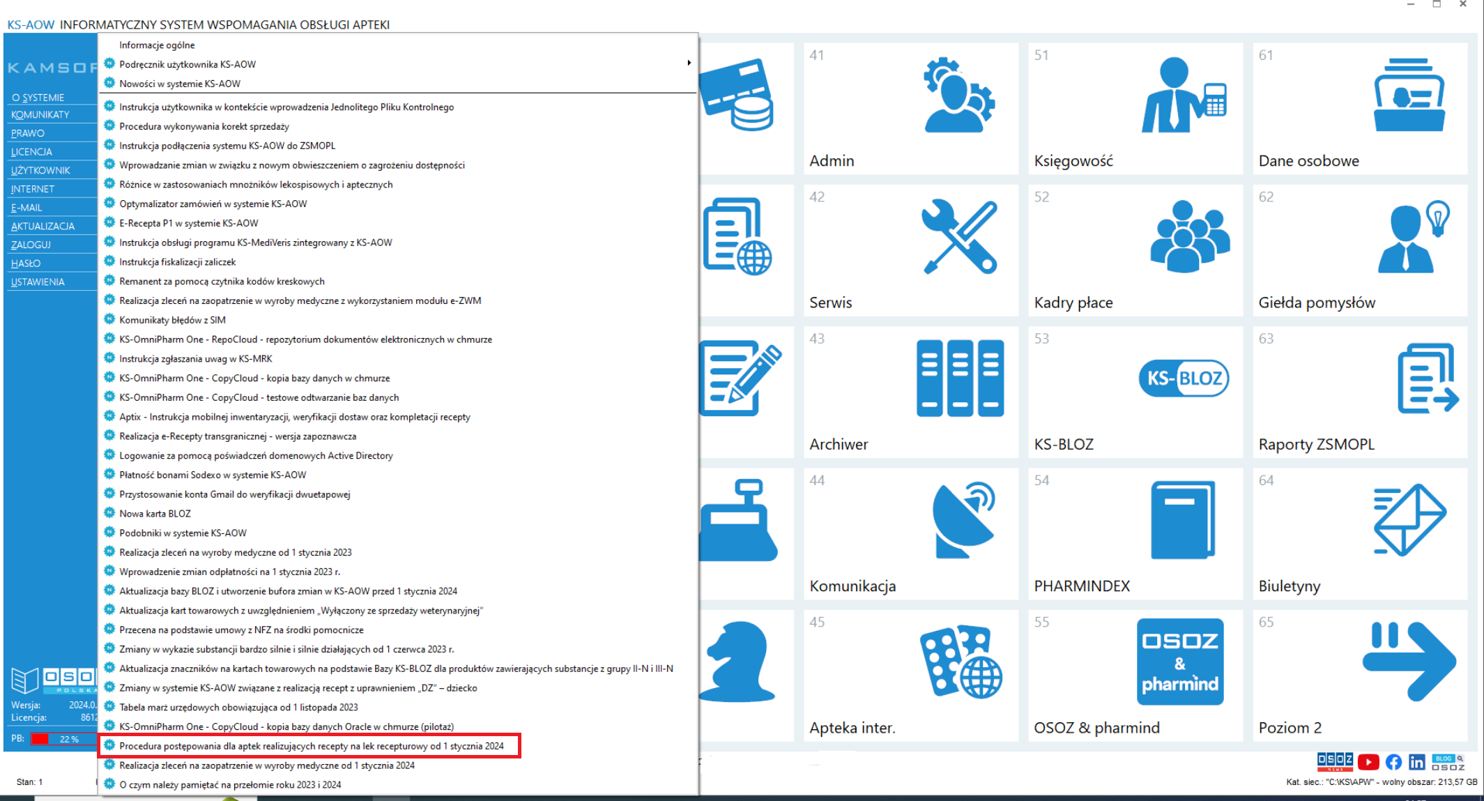 Prosimy o zapoznanie się z treścią komunikatu oraz wdrożenie działań weryfikacyjnych i naprawczych (konieczności zaktualizowania systemu aptecznego KS-AOW do wersji 2024.0.2.2)